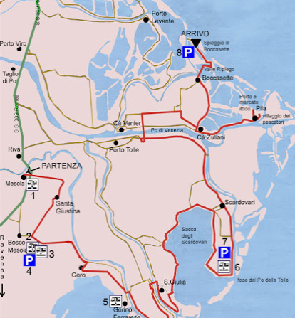 Si prende la statale Romea e superate le uscite per Rosolina, Taglio di Po e Porto Viro si abbandona la statale per entrare direttamente nel territorio del Delta in direzione Bosco della Mesola. Nel giro di pochi km avanzando nell’entroterra del Delta si viene catapultati in zone semideserte con rare case e piccolissime frazioni disseminate qua e là. Più si va avanti e più diventa forte l’odore della laguna, inconfondibile. Si incominciano a vedere le eleganti silhouette degli aironi e di altre specie di uccelli. Comunque per farsi un’idea di quali e quante specie siano presenti sul territorio del Delta si può consultare questo sito: https://www.parcodeltapo.org/pagina.php?id=239 ma le librerie sono ben fornite di guide tematiche ad hoc.