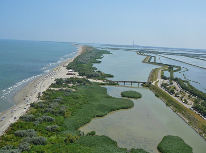 Ripartiamo verso est, dove ben presto oltre alle morbide vedute paesaggistiche, è possibile ammirare le caratteristiche cavane, costruite nelle vicinanze degli allevamenti dei mitili, sono casette che i pescatori utilizzano per il ricovero delle barche, delle attrezzature di pesca, nonché per i servizi di minima. Stiamo completando il giro della Sacca di Scardovari, siamo molto vicini al mare. Abbiamo l’opportunità di effettuare una sosta per visitare le spiagge di Barricata. La recente costruzione del vicino villaggio turistico ha compromesso l’aspetto selvaggio che caratterizzava anche la spiaggia principale, per questo il consiglio è di inoltrarvi a piedi nella parte sud, verso la Spiaggia delle Conchiglie, raggiungibile dallo stesso argine che completa la Sacca con accesso pedonale. Superato il vicinissimo stabilimento balneare, seguendo la battigia, a poche decine di metri, vi troverete a passeggiare fra legni e relitti portati dal mare. Proseguendo verso nord lungo la S.P. 38 in direzione Porto Tolle, ed attraversando il maestoso Po di Venezia (Po Grande) raggiungeremo il paese di Pila che lasceremo sulla sinistra per dirigerci lungo l’argine verso il Villaggio dei Pescatori. Una fila di baracche e pontili, addossate alla riva del fiume, evocano il duro lavoro che l’uomo ha da sempre dovuto affrontare in quel rapporto stretto di rispetto con il fiume ed il mare. Appena al di là del fiume la ciminiera dell’ex centrale termoelettrica, ora demolita. Ci dirigiamo verso Boccasette, situata nell’isola di Ca venier, è una piccola frazione di Porto Tolle. Boccasette è anche meta ideale per gli amanti del Birdwatching dato che le valli, la spiaggia e gli scanni sono abitati da una grande e variegata quantità di animali. Superato il paese in prossimità dell’argine teniamo la destra, dopo poche centinaia di metri ci troveremo nel sistema vallivo di Valle Ripiego e Valle Chiusa. La strada si snoderà attraverso le valli regalandovi scorci di natura vera. Non vi sarà difficile imbattervi in aironi, garzette ed anatidi da immortalare con la macchina fotografica. Con un po’ di fortuna, quando la luce cala e tutto si colora, il volo dei fenicotteri si staglia nel cielo. Proseguiamo per altri 3 km e raggiungiamo il parcheggio della Spiaggia di Boccasette. Situata sull’isolotto di Boccasette è raggiungibile attraverso un ponticello pedonale. La vista del mare, gli ampi spazi, la sabbia bianca ed il retroterra assolutamente unico rappresentano la conclusione del viaggio.